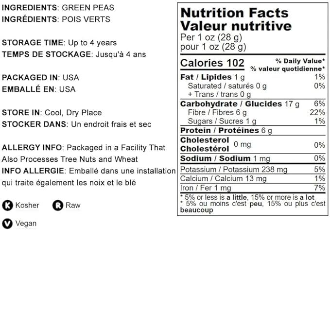 - ✔️RICH IN PROTEIN: Green Split Peas contain 2 grams of protein per 28 grams.
