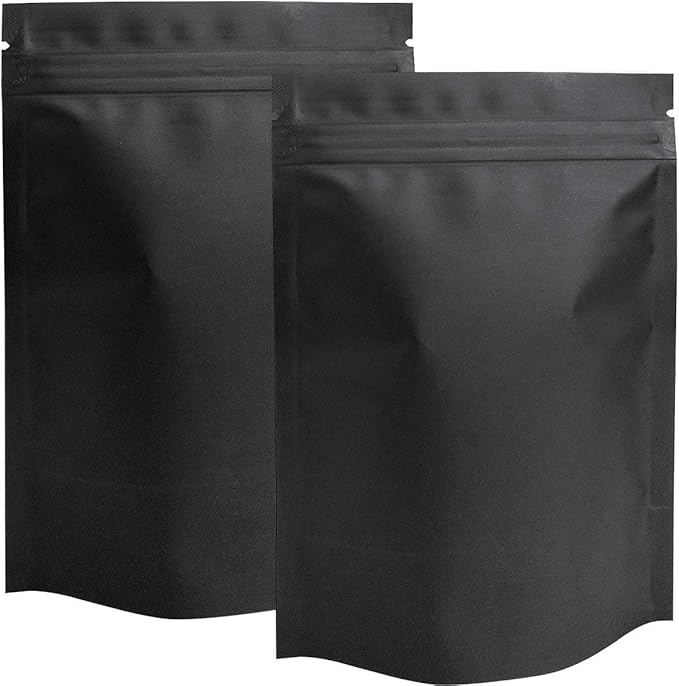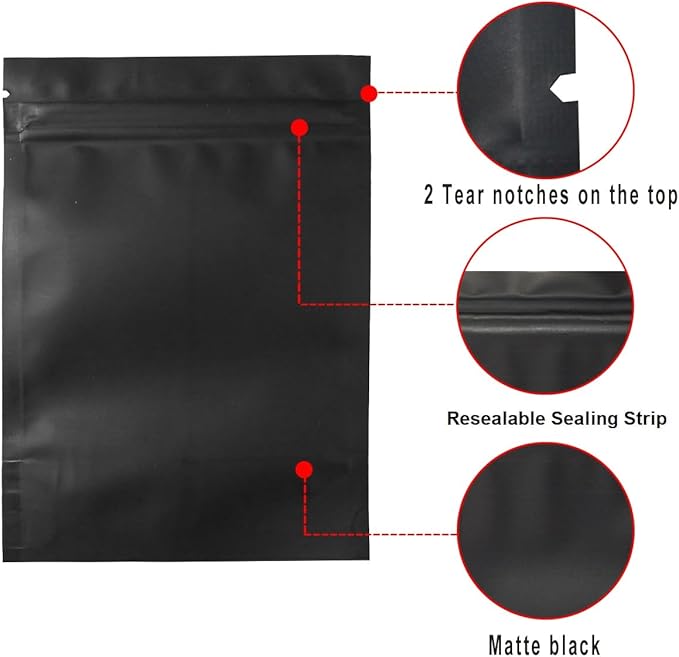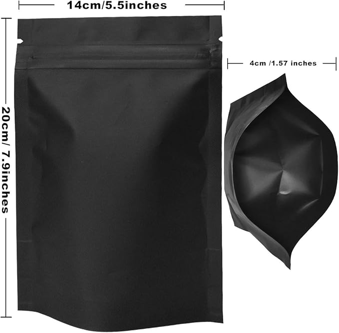 STUs 100 Pack Mylar Stand-Up Bags 5.5 x 7.9 Inch Smell Proof Bags Foil Pouch Double-Sided Mylar Bag Matte Black