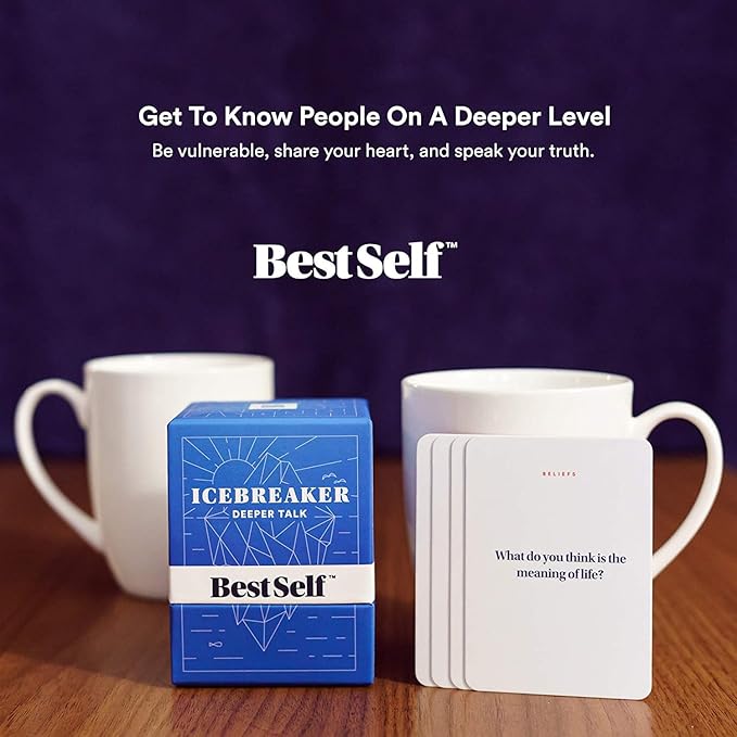 BestSelf Icebreaker Deeper Talk Deck - Conversation Starter Card Pack to Deepen Friendships with 170 Prompts to Create Real Conversations for Friends, Coworkers, Family, Dates