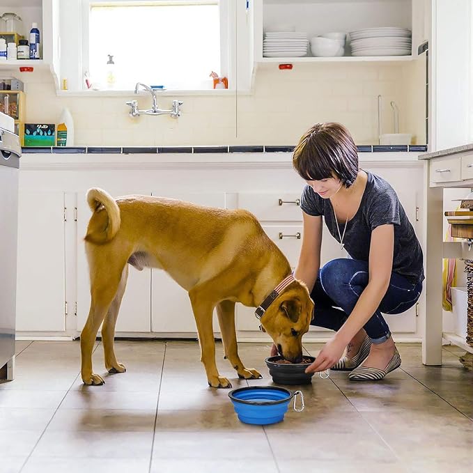 Kytely Large Collapsible Dog Bowls 2 Pack, 34oz Foldable Dog Travel Bowl, Portable Pet Water Food Bowl with Clasp, Pet Cat Feeding Cup Dish for Traveling, Walking, Hiking (Black+Blue)