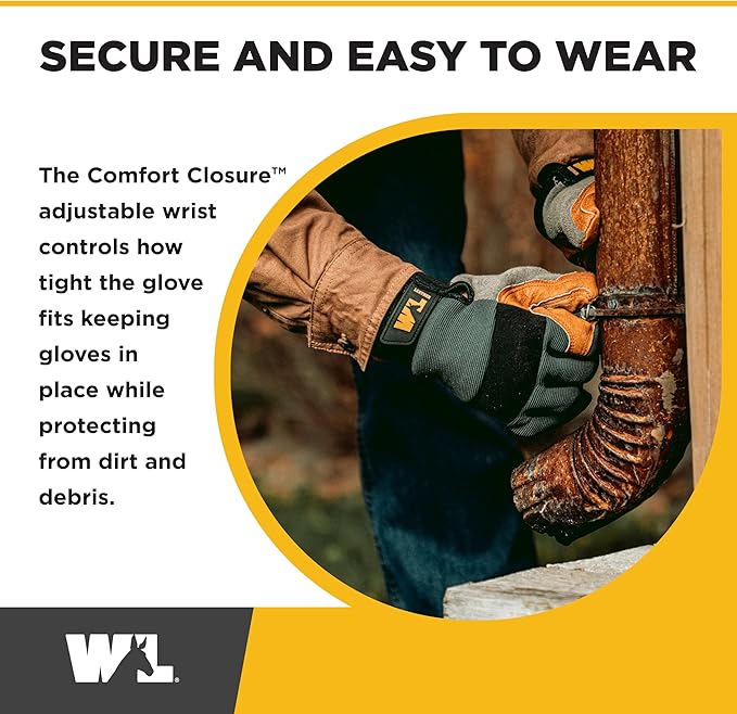 - ADJUSTABLE WRIST - Keeps gloves in place while also keeping out dirt and debris
