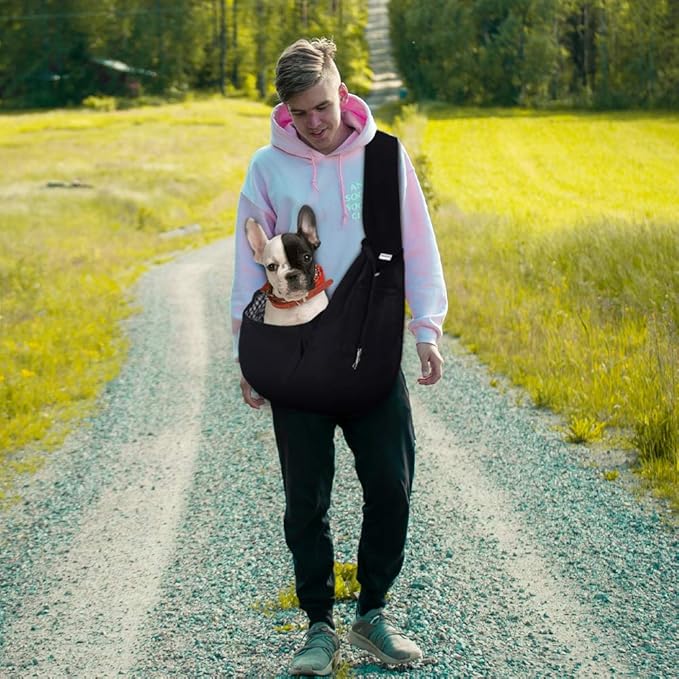 - Hands Free Carrier: Sometimes little puppies tire quickly on walks, or perhaps you just want to keep them close! Our dog sling carrier is a hands free carrier that allows you to take your little pet along with you while still being able to use your hands!