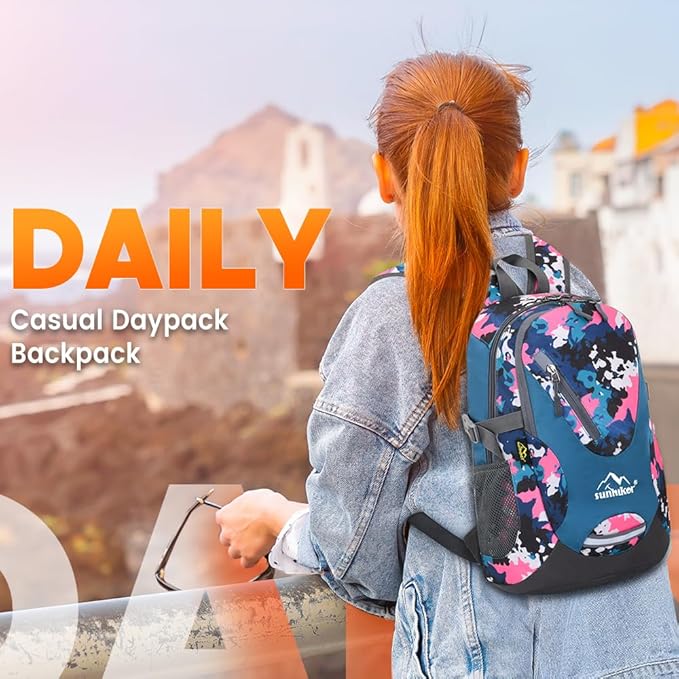 sunhiker Small Cycling Hiking Backpack Water Resistant Travel Backpack Lightweight Daypack M0714 (20-25L-Pink Camo