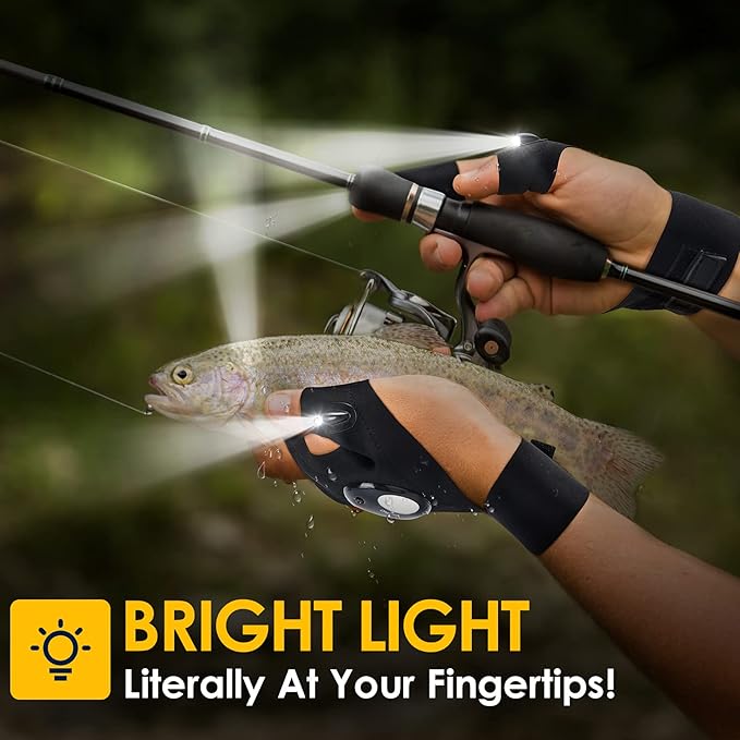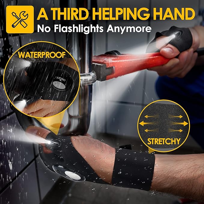 - One Size Fits Most, Stretchy for Large Hands - The fingerless flashlight gloves are made of stretchy fabric, and with lengthened straps that fit most men and women comfortably. The led gloves are useful gadgets for handyman, car lovers, electricians, engineers, mechanics, plumbers, delivery drivers who need reliable light in dark spaces. The lighted gloves makes a ideal gifts for outdoor enthusiasts, helpful for fishing, night running, camping, hiking, dog walking in the early morning or at dusk