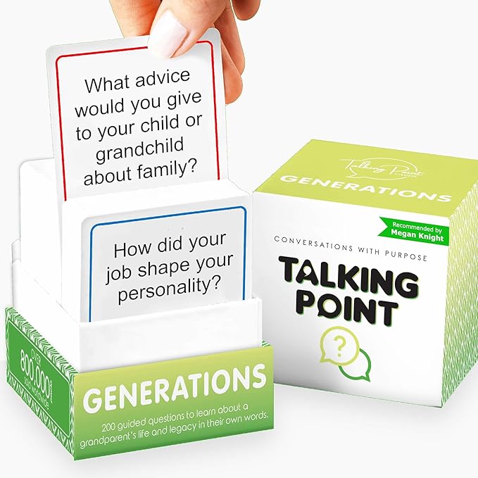 - THE GIFT OF A LIFETIME - What do you give someone who needs nothing? The opportunity to share their life to attentive, engaged listeners - share their legacy and pass on wisdom to the next generation. Gift Mom, Dad, Grandma, Grandpa with your attention and interest with Talking Point Cards Generations Edition