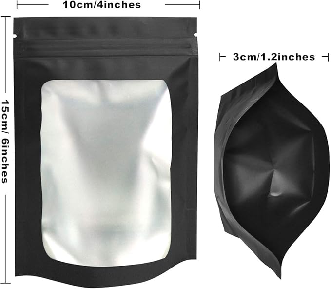 - SIZE - Outer size is 10 x 15 cm/ 4 x 6 inches, inner size is approx. 9 x 12 cm/3.5 x 4.7 inches, Bottom width approx. 1.2 Inches, they can stand-up, smell proof baggies will protect your goodies against dry climates whether.