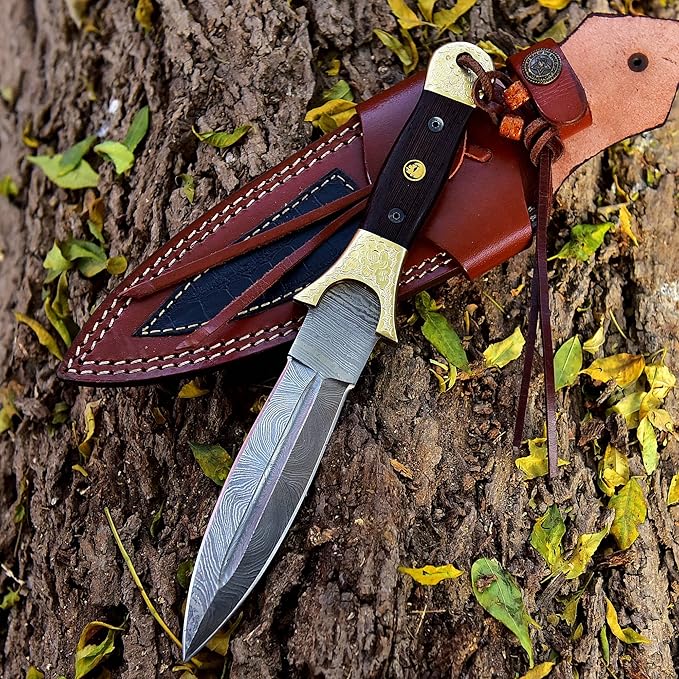 Damascus Steel fixed Blade Hunting Knife with Sheath for Men - Camping/Survival/Tactical/Handmade 9.5 Inches. SM29