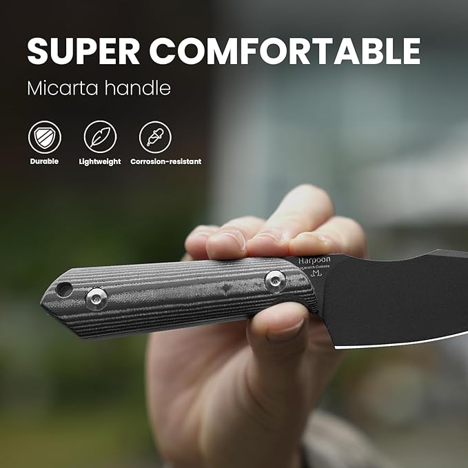 - Comfortable Grip: The micarta handle's gentle texturing adds an organic feel to this fixed blade knife that makes it hard to put down. High resistance black Micarta handle is sculpted into a broom handle style.