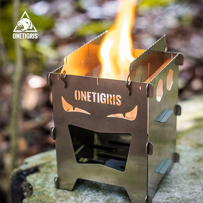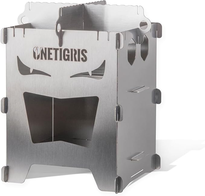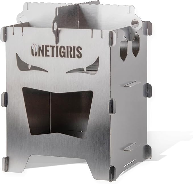 OneTigris Camping Backpacking Stove Portable Foldable Burning Wood Stove for Outdoor Hiking Picnic BBQ,Stainless Steel (Medium)