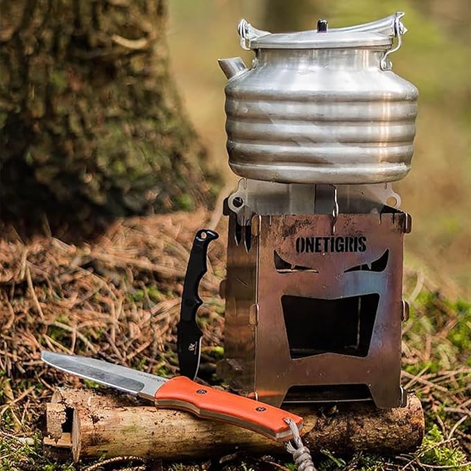 - đ„ ăRugged rust-proof materialăMade of 304 stainless steel, this handy folding stove is rust-resistant & corrosion-resistant for extended use even under heavy loads or high temperatures, and rust-proof for outdoor use. The cross provides a stable platform for your cookware and increases thermal contact. Large opening for easy addition of wood. Air vent, good ventilation, high combustion efficiency.