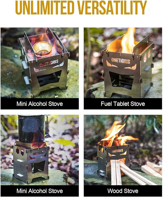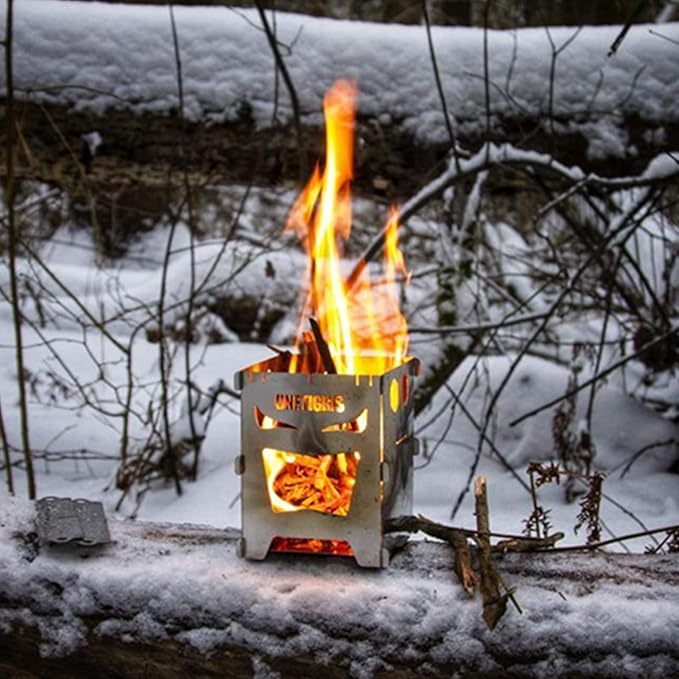 - đ„ ăProfessional designăThis amazing portable backpack camping stove consists of 4 walls and can be quickly assembled without tools. The design of the large opening makes it easy to add more wood, and the special small entrance helps you burn fuel better, collect heat, and save fuel. When you're hiking or camping, you can simply use wood, twigs, leaves, or solid alcohol as a fuel source.