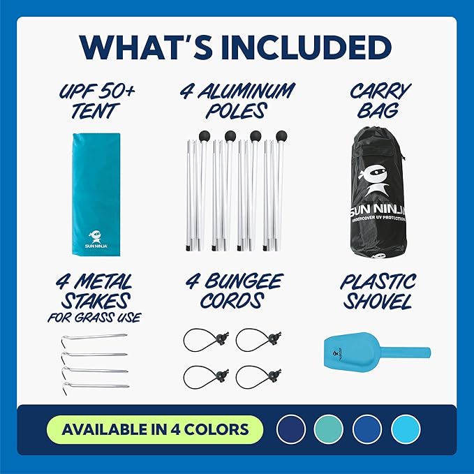 - Easy Setup: Our SUN NINJA cool cabana beach tents set up easily and come with stability poles and anchors that let you use them over sandy beaches, thick grassy areas, or even in rocky camping spots.