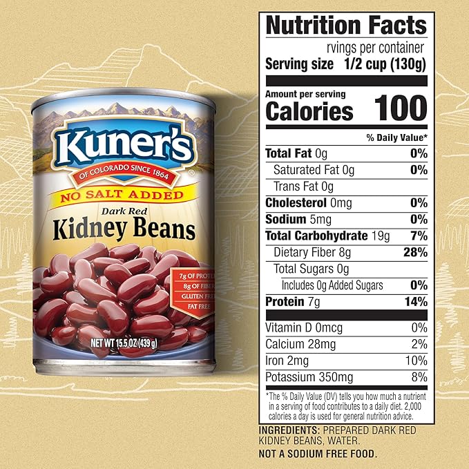 - Simple and tasty. Kuner's kidney beans have no added salt, are vegan, and full of plant protein and fiber.