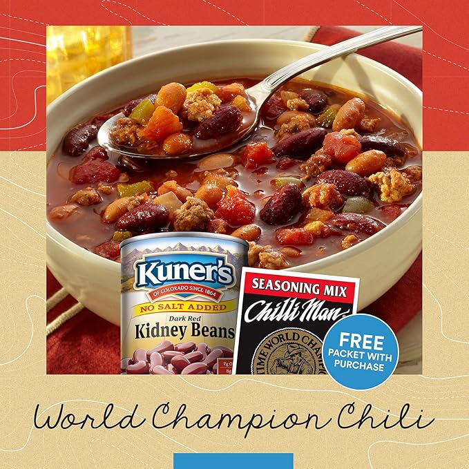 - Free chili seasoning included. Kuner’s kidney beans make good chili better. And Chilli Man chili seasoning mix makes good chili award-winningly tasty. As a thank you for your purchase of Kuner’s kidney beans, please enjoy a free sample of Chilli Man seasoning mix, brought to you by the same family of brands that makes your favorite beans.
