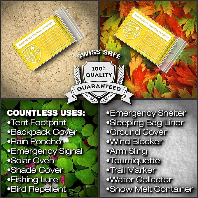 Swiss Safe 25 Pack Mylar Emergency Blankets for Survival - Compact & Insulated for Cold Weather - Designed for NASA, Outdoor, Running, Camping, Survival, First Aid Car Kit - Gold, 25 Pack