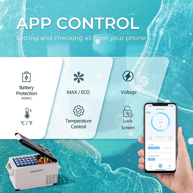 EUHOMY 12 Volt Refrigerator, 38QT(35L) Electric Cooler, 12V Fridge APP Control, 12V Cooler -4℉~68℉, Portable Freezer 12/24V DC 100-240V AC for Camping, Travel, Truck, Home