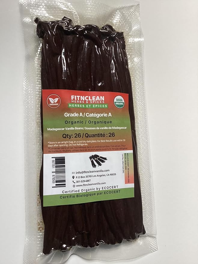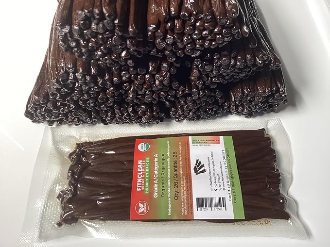 26 Organic Madagascar Vanilla Beans Grade A. Certified USDA Organic. Fresh by FITNCLEAN VANILLA for Extract, Cooking, Brewing, Baking. Bulk Bourbon NON-GMO Whole Gourmet Pods
