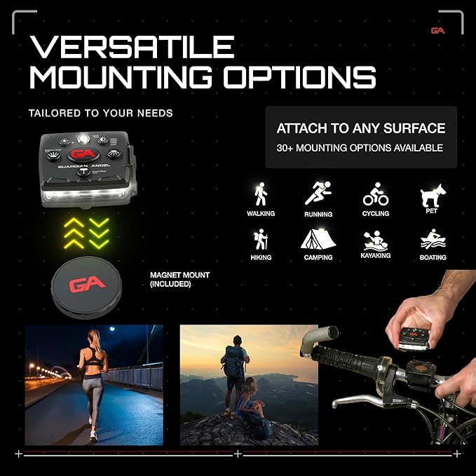 - 𝗩𝗲𝗿𝘀𝗮𝘁𝗶𝗹𝗲 𝗠𝗼𝘂𝗻𝘁𝗶𝗻𝗴: Each Micro device features a built-in rare-Earth magnet that works with all GA mounts as part of the patented Magnet Mounting System. Securely attach to clothing with included magnetic mount, or secure in seconds to your bike, helmet, dog collar, leash, stroller, backpack, tent, vehicle and more with the purchase of activity-specific mounts. Two built-in screw mounts add extra security. One light offers 1,000s of uses and can be mounted to anything.