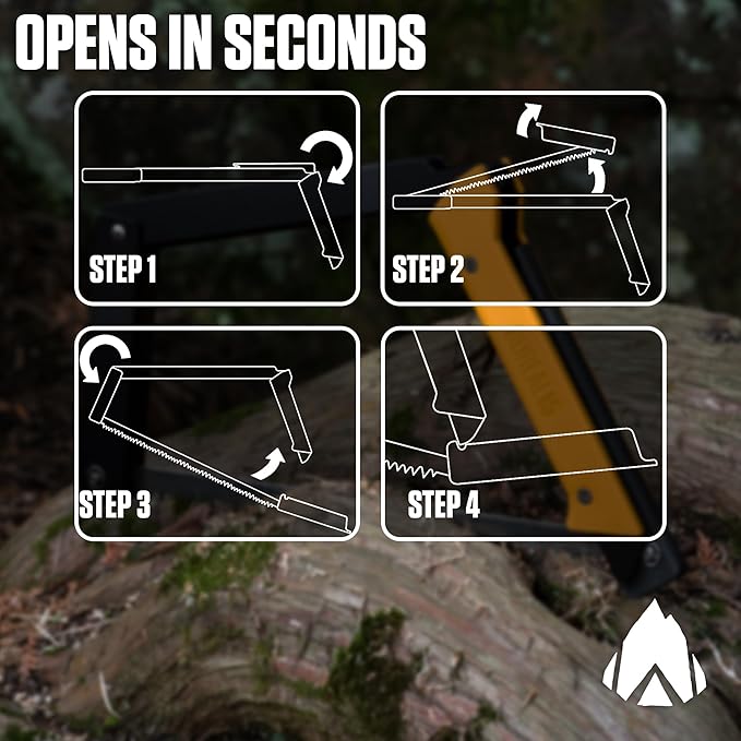 - EASY TO FOLD HANDLE: Thanks to its 3-hinged trapezium-shaped frame, the BOREAL hand saw opens in seconds! Just unfold, snap into position & start sawing. Our automatic blade tensioning contains no loose parts, so no need to touch the blade while opening & closing for safe handling.