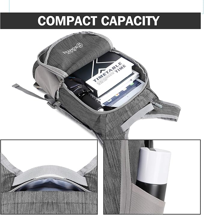 - Reasonable and Orderly: Our packable backpacks capacity is 18L,and the structure layout is reasonable and orderly.There is a main bag that can be folded backpacks,storing clothes;2 side bags store kettles and umbrellas;a privacy pocket stores important items to protect your privacy;a outer bag stores mobile phones and mobile power sources for easy use.With a structure with a organized structure,the items are no longer "missing" and quickly use items