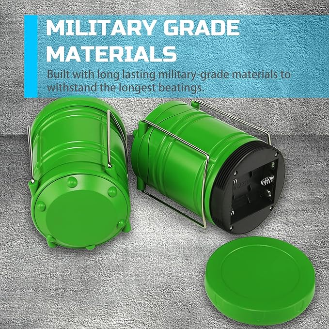 Lichamp 4 Pack LED Camping Lanterns, Collapsible Flameless Candles Tea Lights, Portable Battery Powered Camping Lights Emergency Supplies Kit, Green