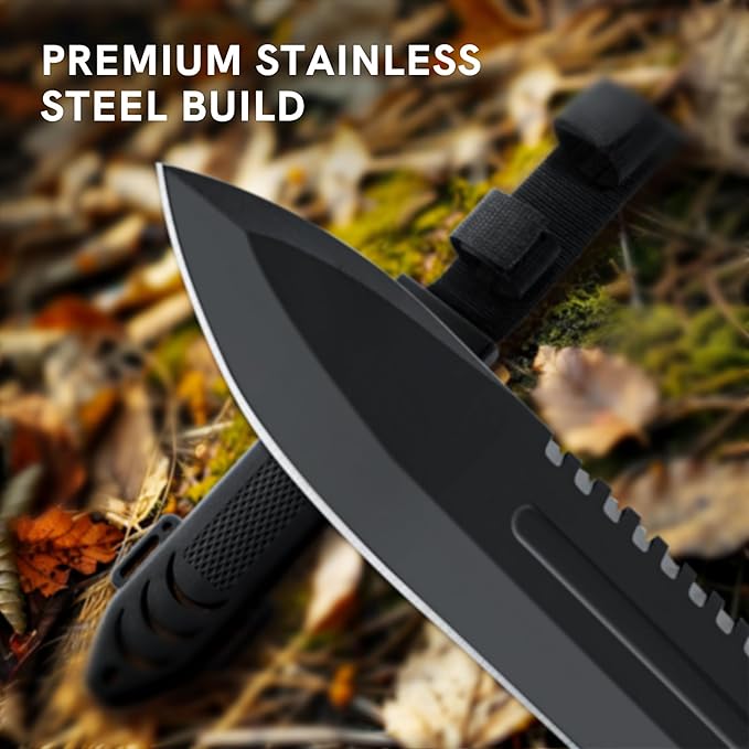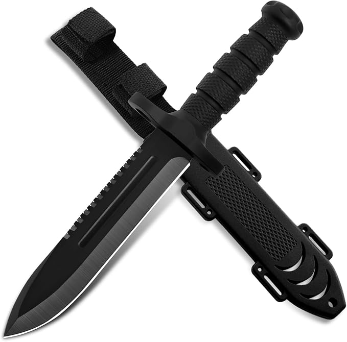 Dispatch Fixed Blade Hunting Knife with Sheath, 12-inch Survival Knives for Men Tactical Bowie Knife with Non-Slip Handle for Bushcraft, Outdoor Camping
