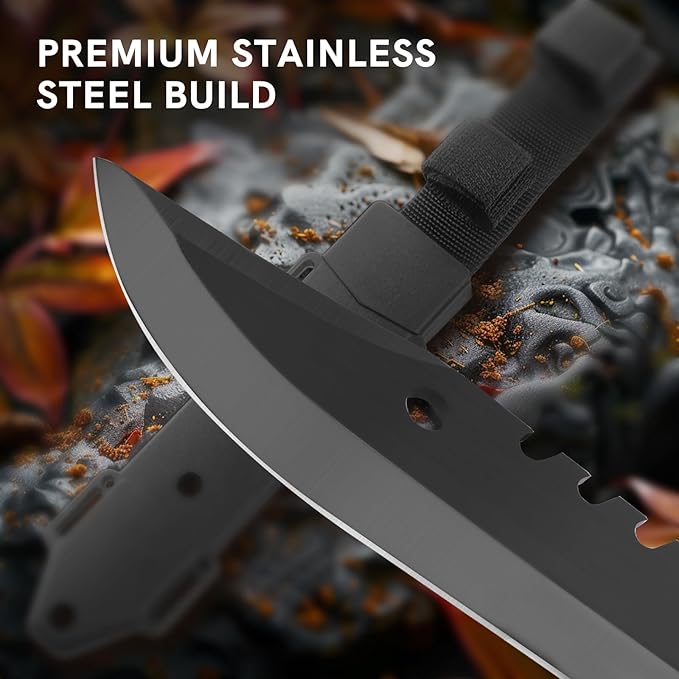 Dispatch Fixed Blade Hunting Knife with Sheath, 12-inch Survival Knives for Men Tactical Bowie Knife with Non-Slip Handle for Bushcraft, Outdoor Camping