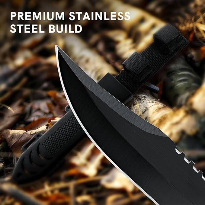 Dispatch Fixed Blade Hunting Knife with Sheath, 12-inch Survival Knives for Men Tactical Bowie Knife with Non-Slip Handle for Bushcraft, Outdoor Camping