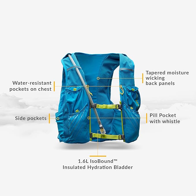 - FUNCTIONAL HYDRATION: Our 12 Liter Hydration Pack keeps you moving in total comfort. Equipped with 2 water-resistant pockets, 2 new kangaroo pockets, and a new shape for maximum breathability and enhanced storage, it's the perfect race day vest!