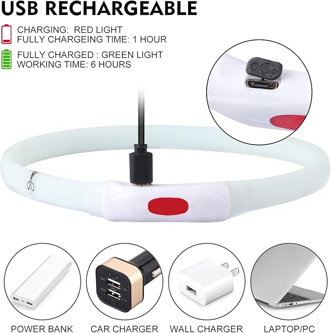 - ADJUSTABLE SIZE&WEATHER RESISTANT :This Pet led collar can be cut to fit dog's necks small to large from 12" to 22".And It’s waterproof and dust resistant, perform well under all bad weather condition.