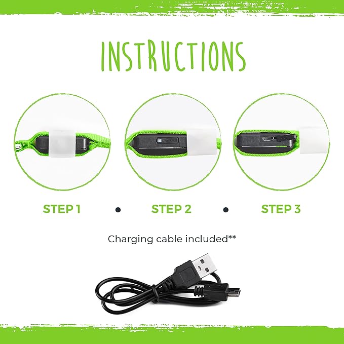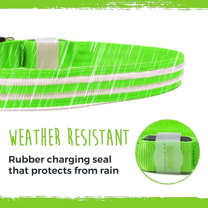 Mighty Paw LED Dog Collar - USB LED Rechargeable - USB Rechargeable Light - High Visibility Glow Strips - Glow Pet Weather Resistant - Enhanced Nighttime Visibility - Light Up Dog Collar - (L, Green)
