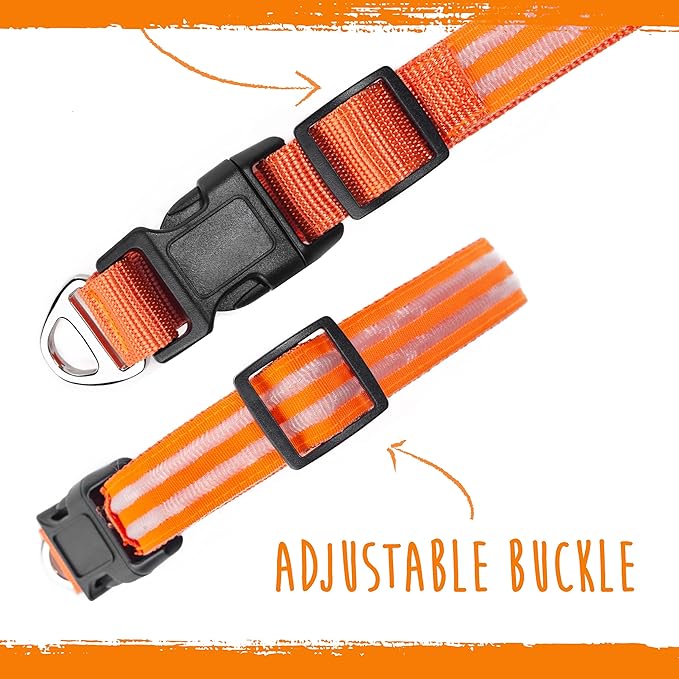 Mighty Paw LED Dog Collar - USB Rechargeable LED - High Visibility Glow Pet Strips - Weather Resistant - 3 Bright Light Modes for Nighttime Dog Safety - Collar USB (S, Orange)