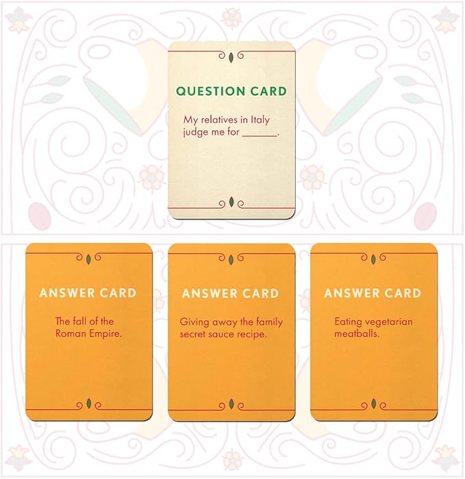 - A FUNNY TWIST ON ITALIAN CULTURE: Written by Italians, for Italians - a pasta-loving game that's perfect for your next gathering.