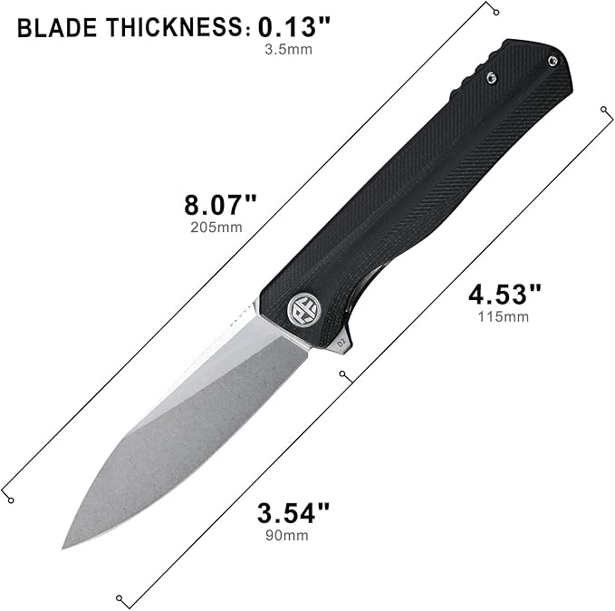 - 【EDC Tool Knife】Total Length Size is 8.07”, Blade Length is 3.54”, Blade thickness is 0.13”.