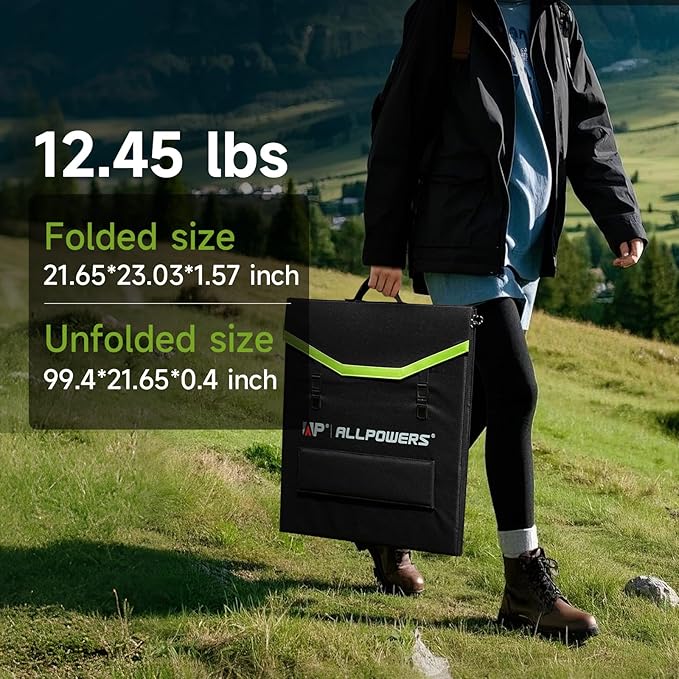 - 【Ultra-Light & Highly Portable】 Weighing only 6.92kg (about 15.2 lbs) and folding down to a slim profile of 650x155mm, this is your ideal lightweight companion. It's easy to pack and carry, making it one of the most portable solar panels for camping, hiking, and road trips.