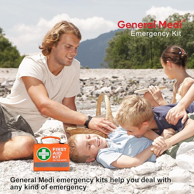 General Medi First Aid Kit - 150 Pieces Small Compact First Aid Kit Bag - Includes Instant Cold Pack, Emergency Blanket for Travel, Home, Office, Vehicle, Camping(Orange)