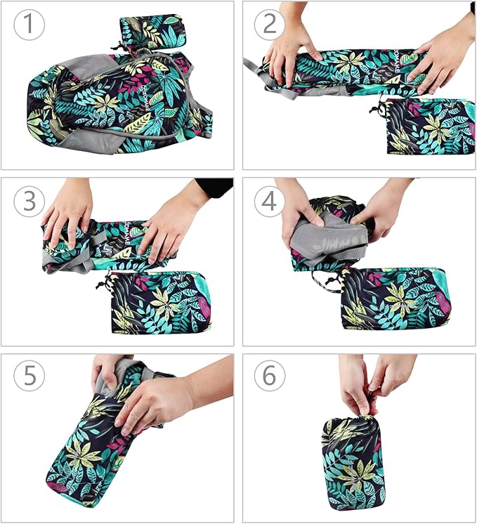 - Lightweight and Convenient: Our foldable backpack ultra lightweight weight is 0.56 pounds,which can be folded into a compact bag and turned into a small handbag (size:4.7×3.5×1.97 inches) The ultralight packable backpack does not take up space,and can be stored in anywhere in jacket pockets,luggage,vehicles,etc.It is a delicate and convenient packable daypack that is a must have for travel vacations