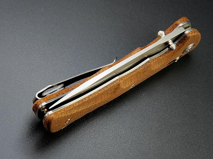 Sitivien ST110 Folding Knife, D2 Blade and Micarta Handle Pocket Knife, EDC Tool Knife with Pocket Clip for Outdoor Camping Hiking Survival(Brown) …