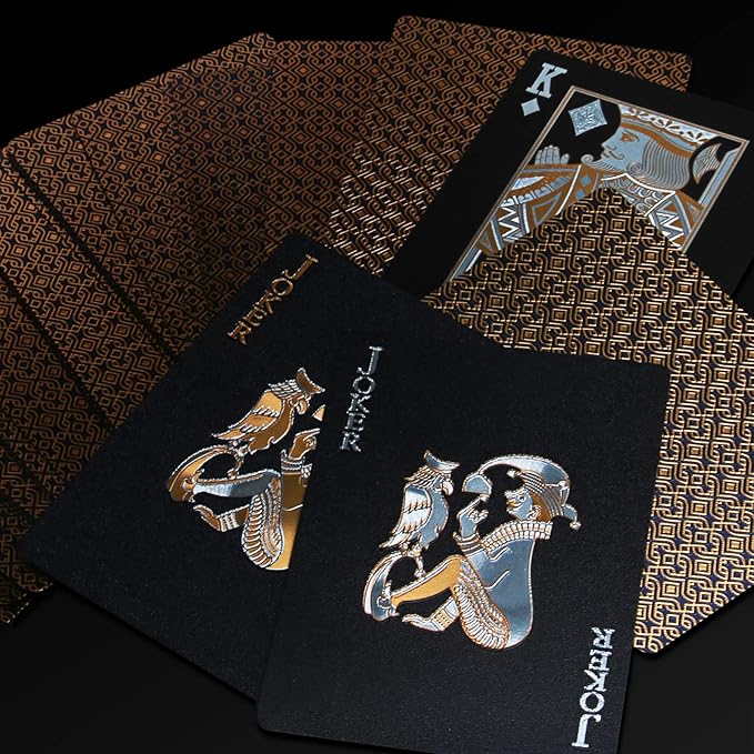 - 【Shining Gold & Durable】What makes these cards stand out is the gold finished look. These playing cards are made of sturdy PET plastic that is not only durable, flexible and withstand multiple uses. The shining gold film makes it look eye-catching and impressive.