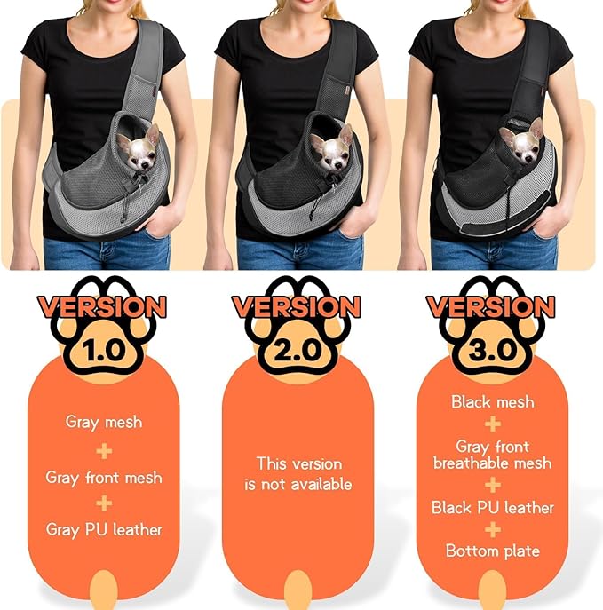 YUDODO Pet Sling Carrier for Small Dogs & Cats – Hands-Free Puppy Carrier with Safety Hook, Large Zipper Pocket, Soft Breathable Mesh, Adjustable Strap & Reflective Strip (Gray 1.0 S)
