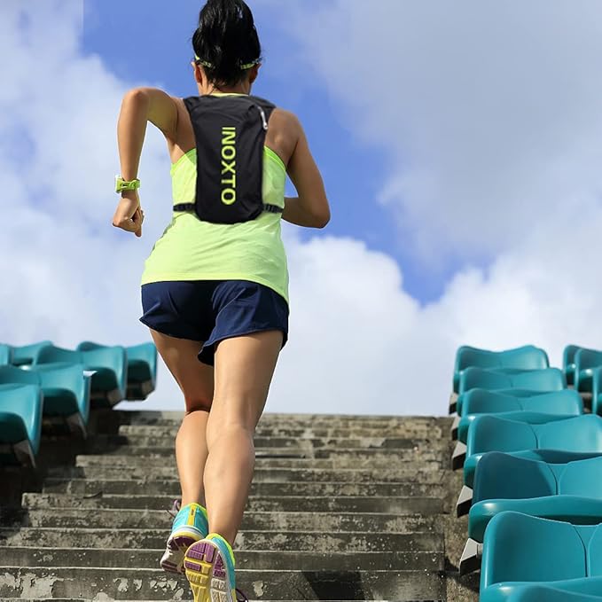 • ❤ 【Ultra-lightweight design】 High-quality nylon material and ultra-lightweight design make it more comfortable to drive. The INOXTO Sport Backpack weighs only 140 grams and can hold 1.5 liters in the main compartment. In addition, the left and right belts have pockets for storing 250 ml PET bottles. Next to the main pocket, there is a pocket for storing mobile phones and items, so you can jog while listening to music!
