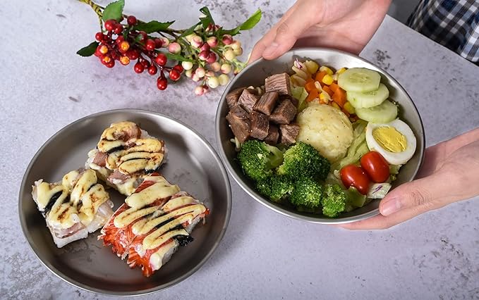 - Non-Toxic & Unbreakable Titanium Dinnerware for Outdoor Adventures: Made from premium aerospace-grade titanium, these odor-resistant plates and bowls won’t alter food taste. Ideal for hiking, RV trips, and survival kits – withstands drops, fires, and extreme temperatures.