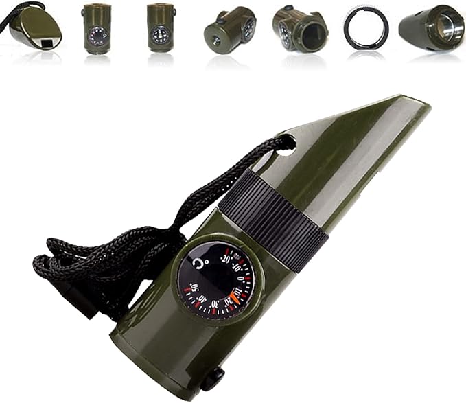 - 【Effective Solution】Shaoduoli emergency survival whistle is absolutely helpful assistant for outdoor;The whistle can send helping signal in an emergency;The compass can guide you when you lost;The thermometer accurately tells the situation of surrounding;You can use the magnifier to make a fire;You can use the light in the dark;When rescue team come,the reflector mirror can help you quickly mark your position;You can put a survival note containing personal information in the sealed storage room.