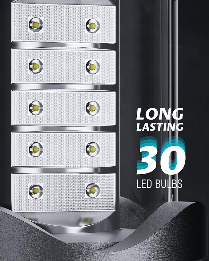 - ULTRA BRIGHT & SAFE: Designed with 30 energy efficient LED for 360 degree lighting (97 sq.ft coverage), the latest LED technology features 150 lumens, emits softer and brighter; Use 3 AA batteries (not included), is safe to touch at low temperature