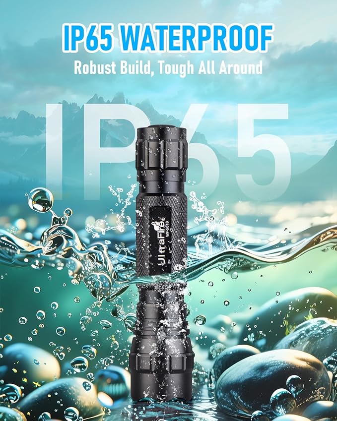 - 【Sturdy & IPX-65 Water Resistant】Made of aerospace grade aluminum alloy, anti-pressure and anti-fall, wear-resistant anodizing. Mini flashlight is IPX-65 waterproof and can withstand most extreme weather such as storms and heavy rain.