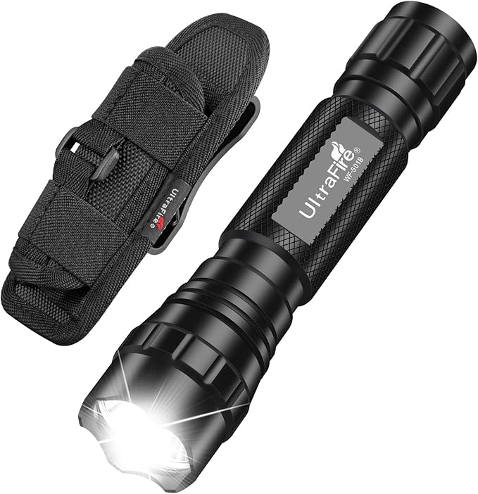 ULTRAFIRE Tactical Flashlight with Holster, Single Mode LED Flashlight 1000 High Lumen Duty Flashlights with Belt Holster and Charger, Bright Small Flash Light WF-501B