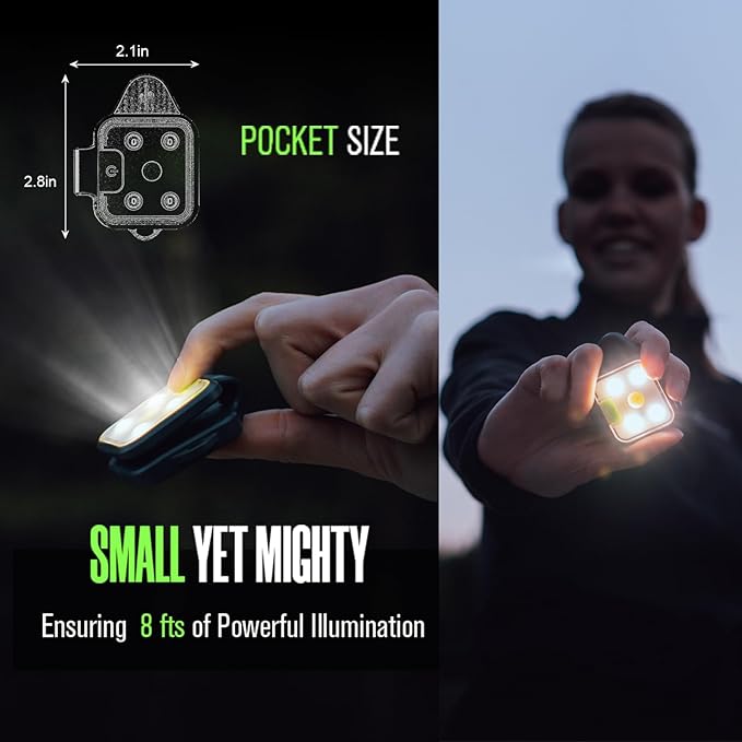 - 【Small Yet Mighty】Despite its diminutive stature, these clip-on running lights astonishingly outputs up to 200Lumens, ensuring powerful illumination that reaches up to 8 fts. This night walking light is perfect for runners and walkers in daily walking and dog walking. Iits high brightness not only illuminates your path, but also ensures safety during evening runs or walks, making it a must-have accessory for outdoor enthusiasts at night.