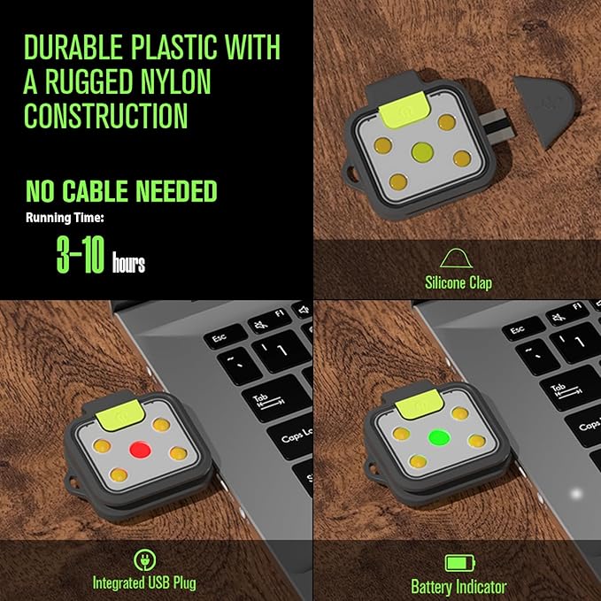- 【USB Charging Made Easy】500mAh Lithium Battery makes this clip on Light working as long as 8-10 hours at low brightness while 3-4.5 hours for high brightness. With ultra-compact dimensions, this rechargeable clip light is designed to fit in the smallest of spaces while providing exceptional charging capability. There is an integrated USB plug at the tail, which can be directly inserted into the adapter for charging, NO CABLE NEEDED. Enjoy the convenience of rechargeable technology, saving you time and money on battery replacements, while also reducing waste.