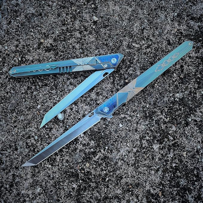 - About 5 inches gradient aurora color titanium alloy handle made with a vintage process, with a radial pattern, exquisite and non-slip.