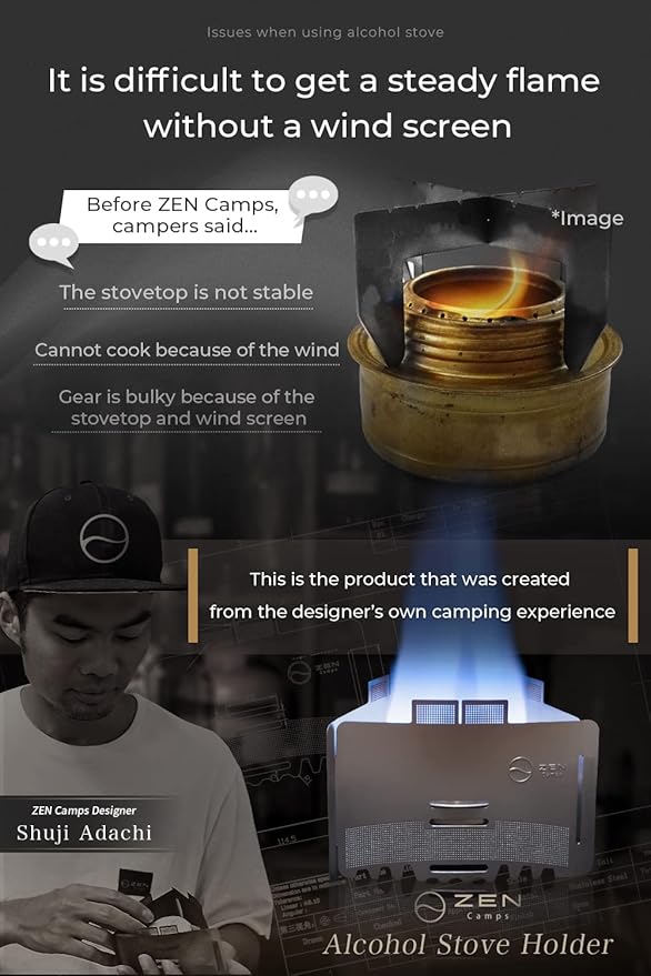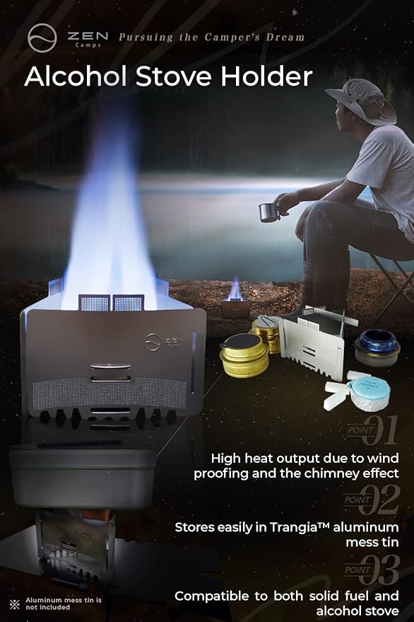 - ⛺️Compatible with common alcohol stoves such as Trangia, Esbit, and EVERNEW. For other stoves, please check the inner dimensions before purchasing this product.⛺️Since the surface of the wind screen has a sand blast finish, it is scratch resistant. It gets more aesthetically pleasing as you use it.Comes with an additional stovetop attachment to accommodate smaller cookware.